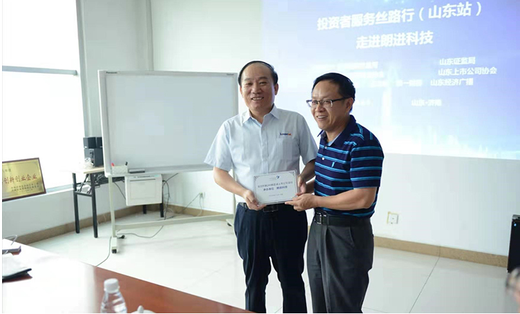 互動交流結(jié)束后,深圳證券交易所徐總向朗進科技授贈了活動紀念牌。