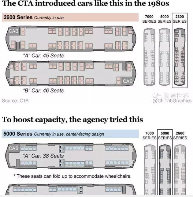 新地鐵車輛車長14.63m,時速達(dá)110km/h,還將配備LED照明,及現(xiàn)代化的乘客信息系統(tǒng)和交流牽引。不像5000系車輛,新的列車將有橫向和縱向的座位,其目的是在最大客流量時盡可能提高乘客的舒適度。該布置是經(jīng)征詢乘客建議后確定的,這也是CTA第一次就車輛座位布局采納乘客意見。7000系列車輛的交付將會使CTA車輛的平均車齡由2011年的26年降低到11年(部分外媒指13年)。CTA預(yù)測車輛保有現(xiàn)代化后,節(jié)能和降低的維護(hù)量將減少每年700萬美元的運維開支。