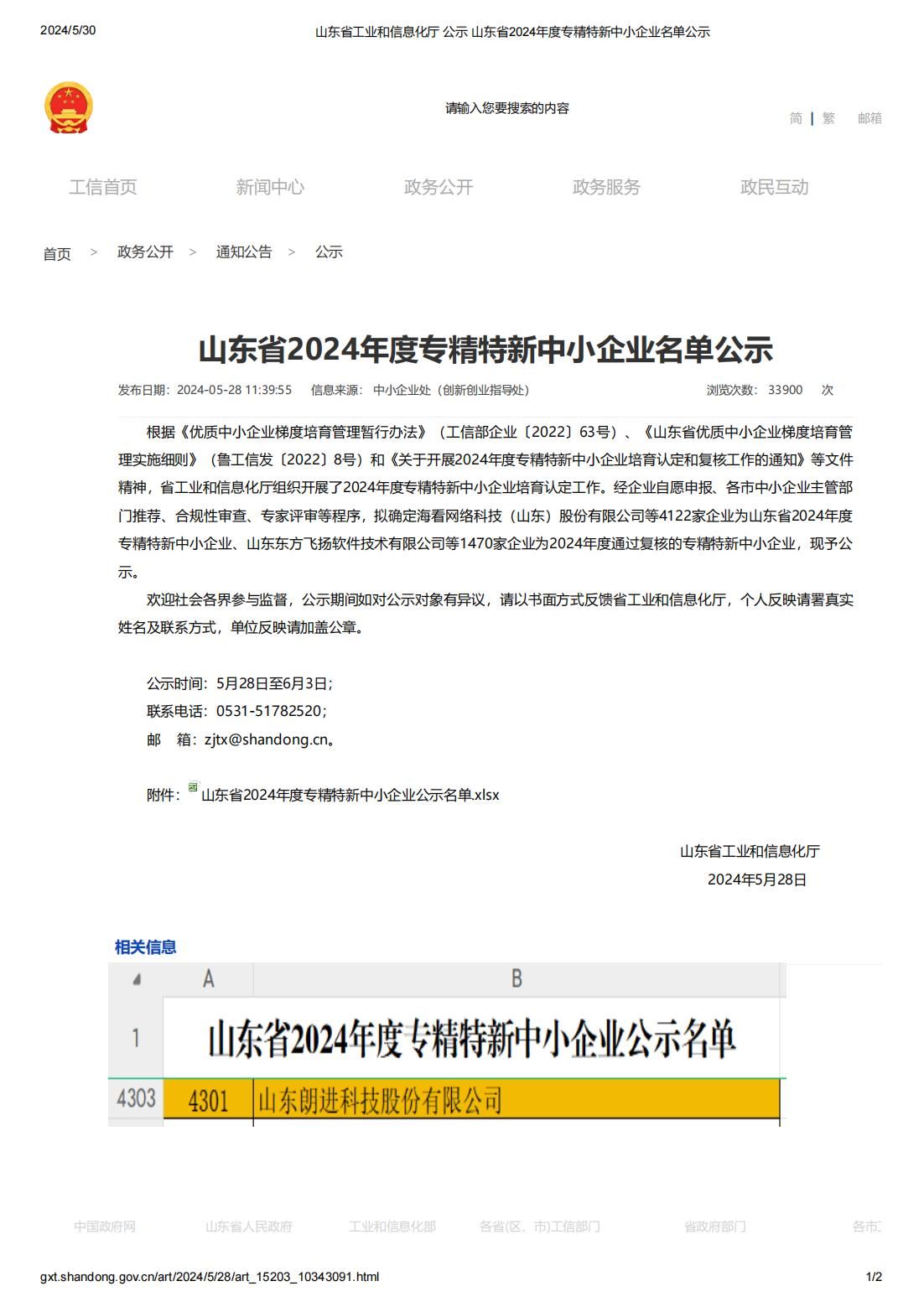 根據(jù)山東省工業(yè)和信息化廳文件公告,朗進科技成功通過山東省2024年度專精特新中小企業(yè)復(fù)審,這標(biāo)志著公司在專業(yè)領(lǐng)域的技術(shù)實力、創(chuàng)新能力以及市場競爭力得到了進一步的認可和肯定。