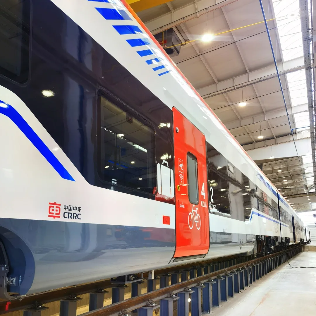 此次亮相的匈塞鐵路高速動(dòng)車組是國鐵集團(tuán)組織中車長春軌道客車股份有限公司,根據(jù)中塞雙方鐵路部門達(dá)成的合作共識(shí),基于復(fù)興號(hào)中國標(biāo)準(zhǔn)動(dòng)車組先進(jìn)成熟技術(shù)平臺(tái),為匈塞鐵路量身定制,結(jié)合塞爾維亞當(dāng)?shù)剡\(yùn)行環(huán)境和線路條件,進(jìn)行了適應(yīng)性改進(jìn),滿足匈塞鐵路跨境運(yùn)輸需要,將于2025年底在匈塞鐵路投入使用。